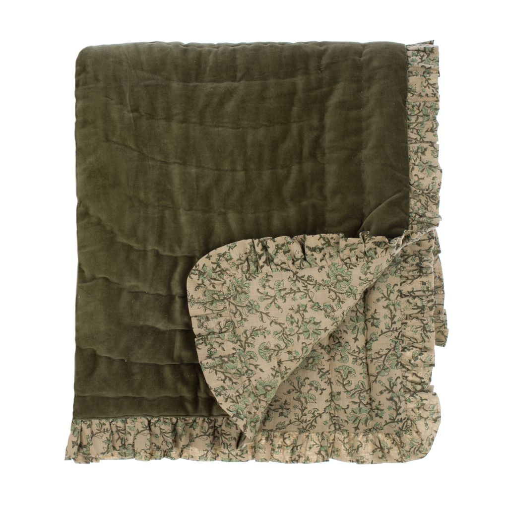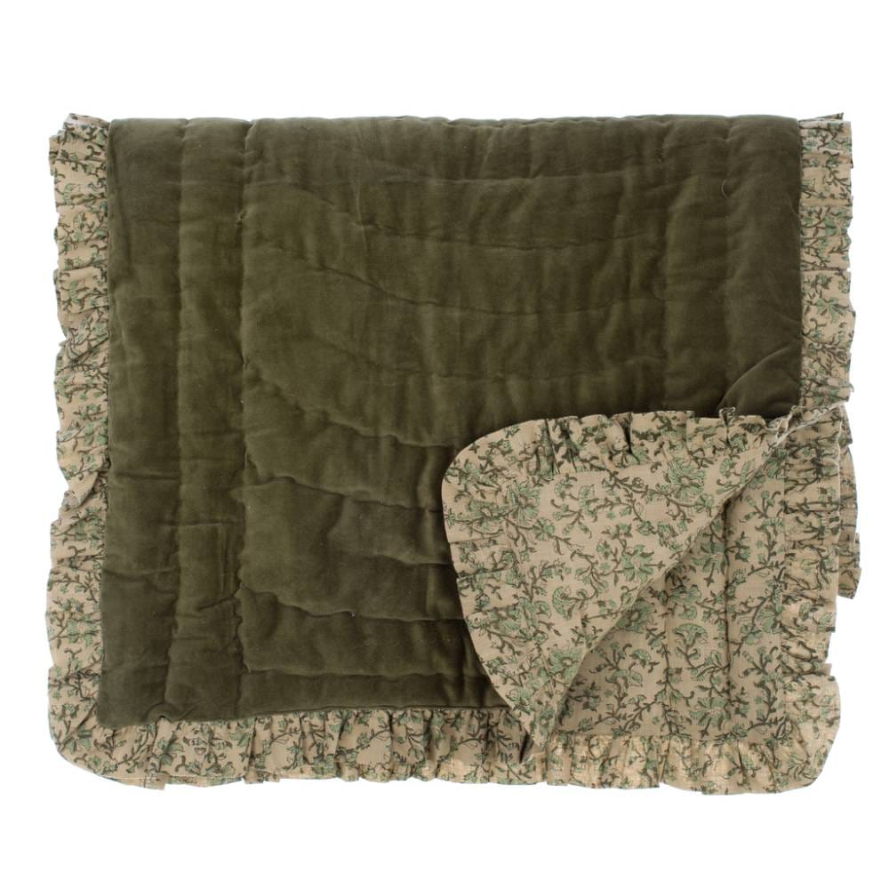double face da un lato in velluto verde e dall’altro fantasia floreale